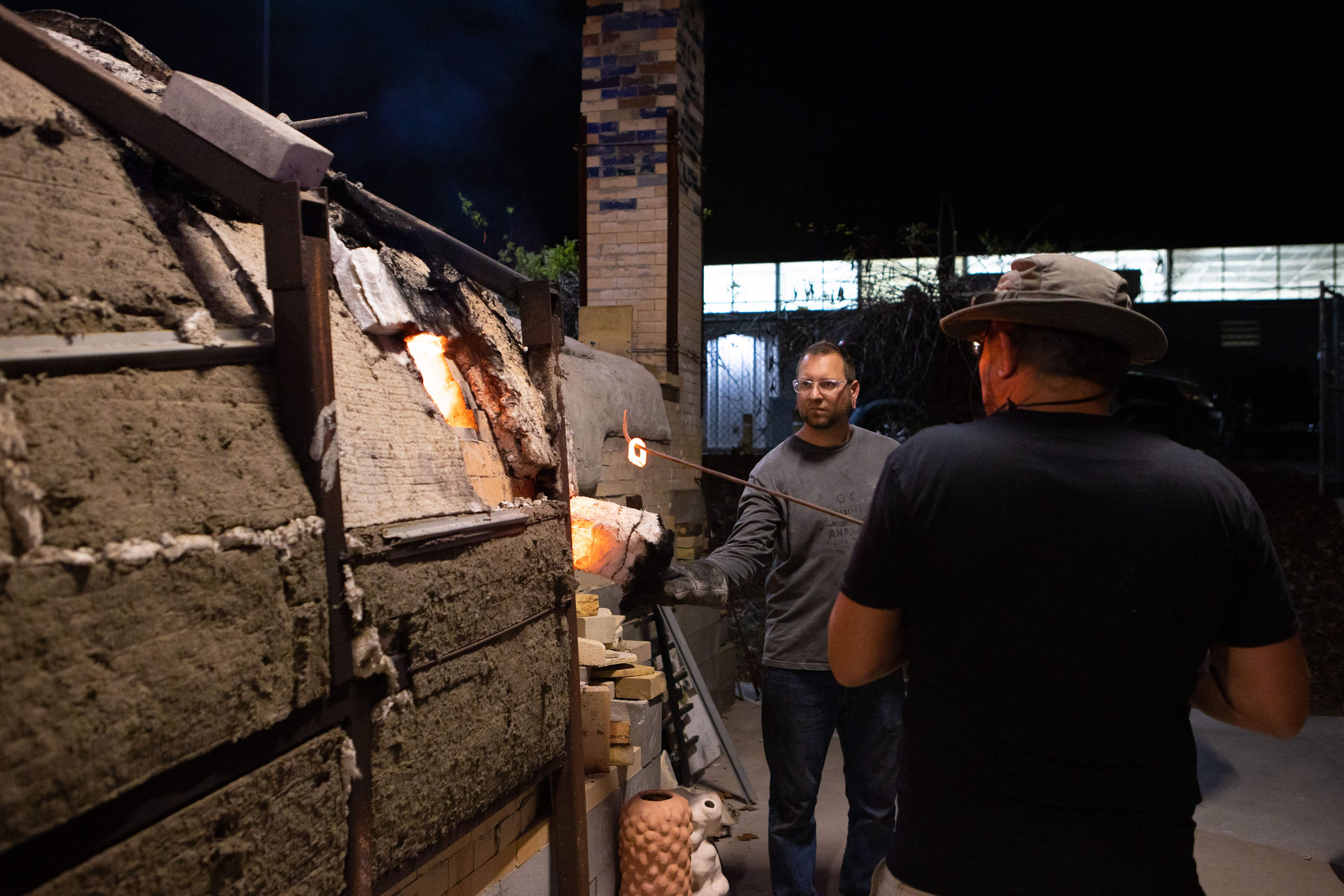 “It’s around 2,400 degrees in the kiln,” he informed. “When I was an undergrad, I didn’t realize you could get that hot from wood alone. At that point for me, wood was just like a campfire or wood stove in your house, and it was hot. But this is really hot. You have to wear protective gear. When you open the doors, it’s like you’re right up against the sun.”