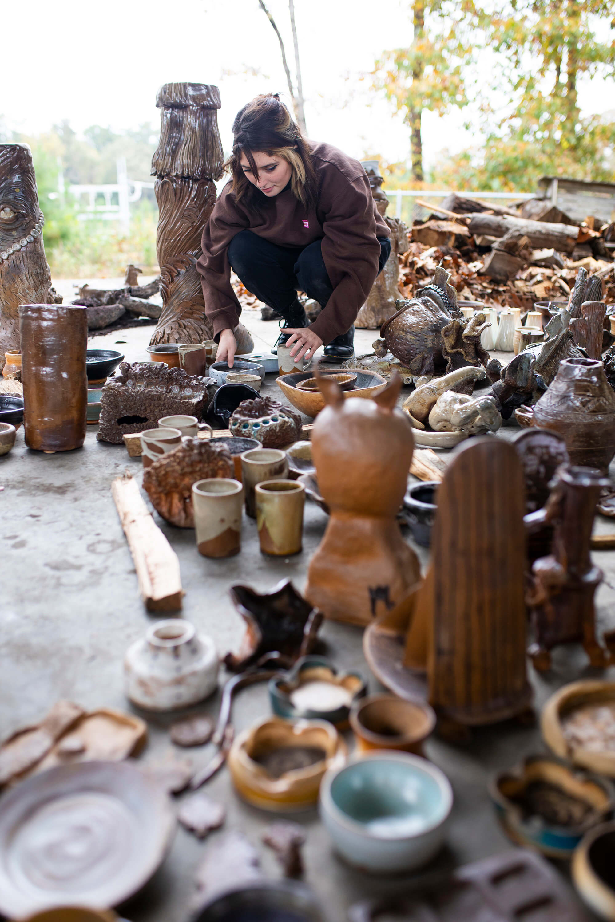Community is a common theme in the artist’s world, and the firing of UWG’s anagama kiln is no exception. The kiln must be fed constantly and is kept ablaze with a continuous supply of firewood and tending. Once lit, students practically live at the site, as stoking the fire 24 hours a day is necessary to keep temperatures hot enough to produce the unique wood-fired pottery and glazes.